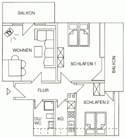 Für Familien mit zwei Kindern, zwei Paaren oder einer Reisegruppe mit bis zu vier Personen ist unsere mit 4 Sternen ausgezeichnete "Ferienwohnung 2" hervorragend geeignet. Diese Wohnung ist für maximal 5 Personen gedacht.