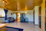 Das große Wohnzimmer mit der bequemen Couchgarnitur bietet Ihnen genug Platz, sich zu unterhalten, zu spielen, Fernsehen (Sat-TV) zu schauen oder zu relaxen. Der zünftige Holzofen mit Sichtfenster spendet an kalten Tagen wohltuende Wärme. Vom Wohnzimmer aus gelangen Sie direkt auf die Terrasse und in den Garten.